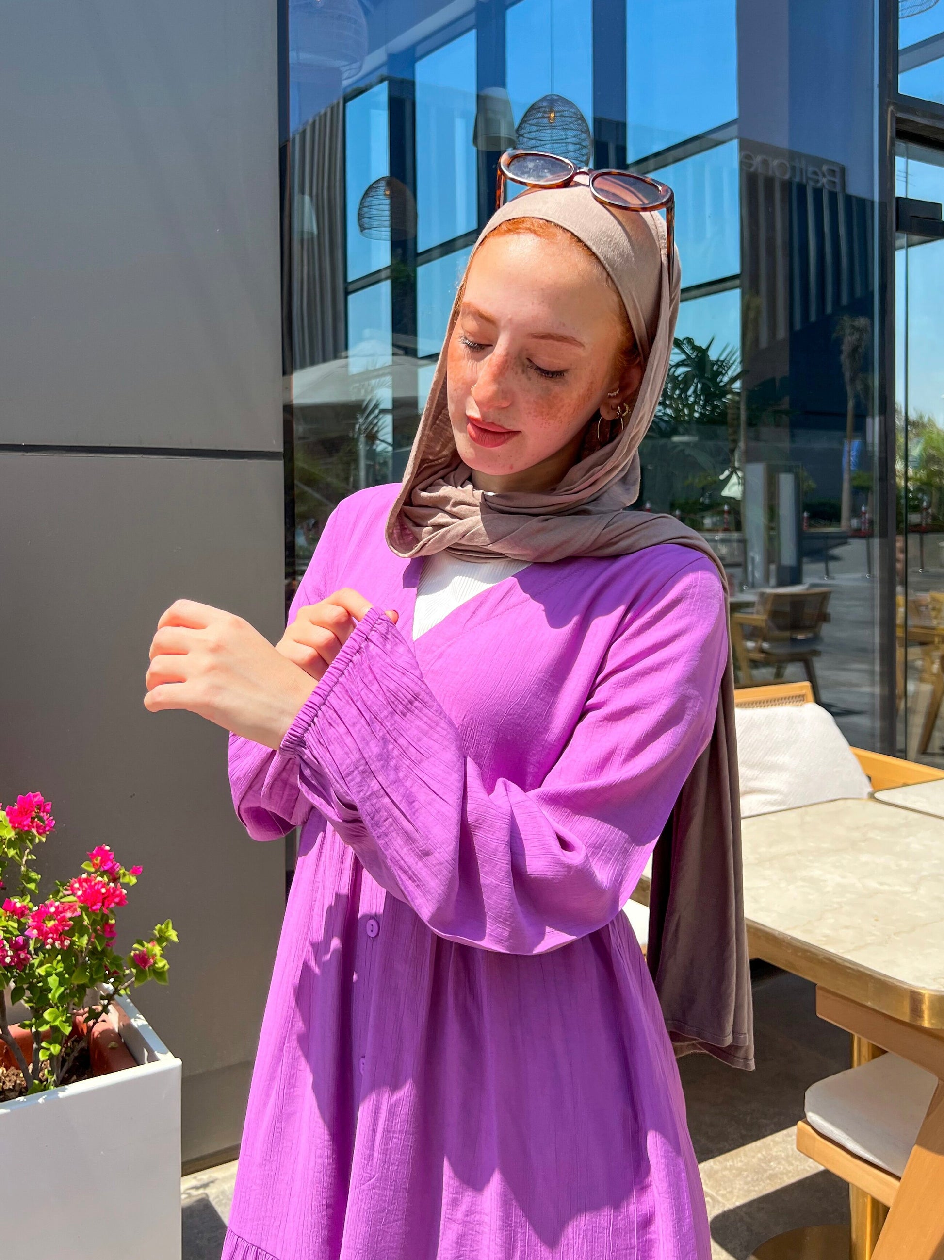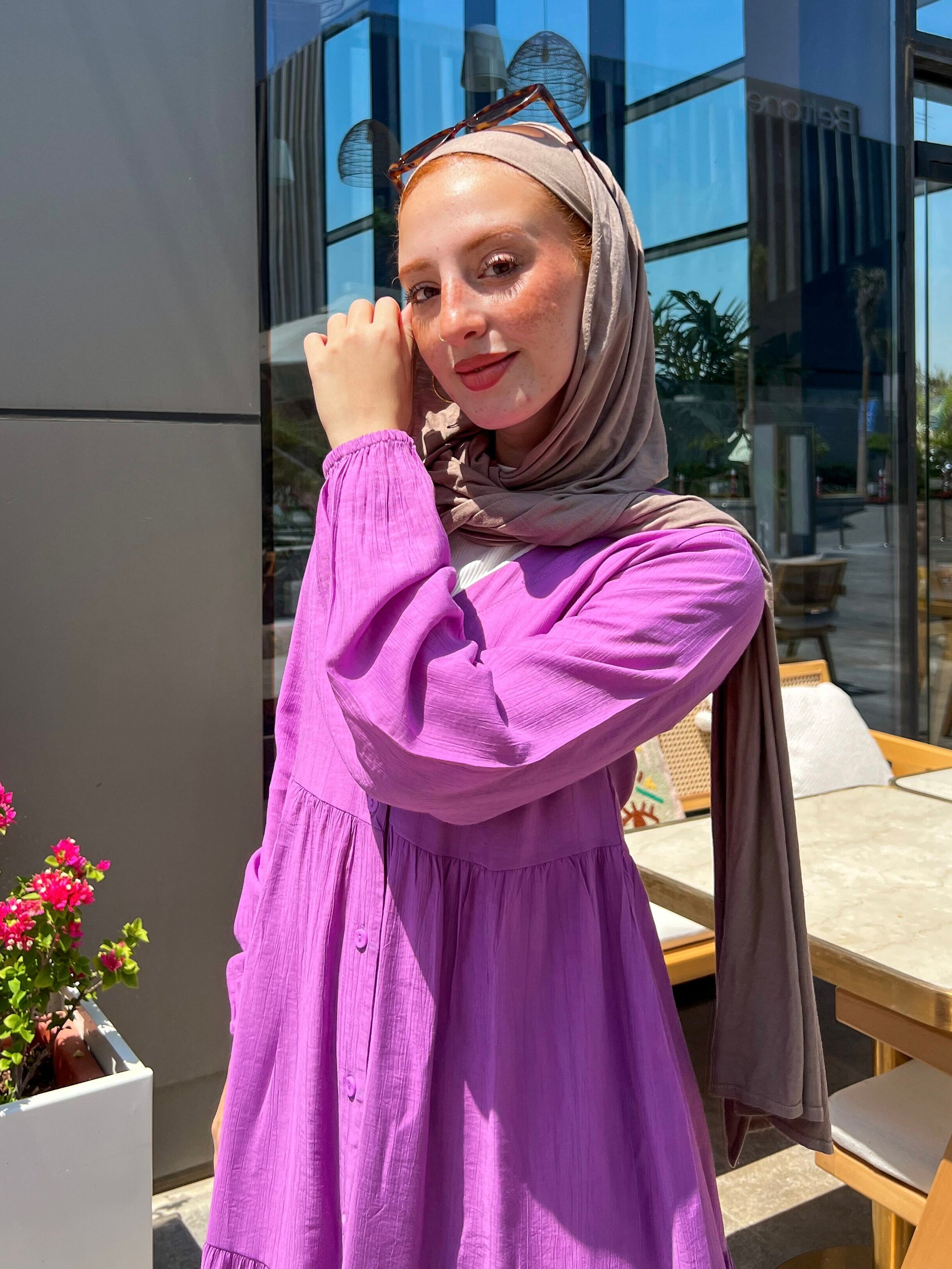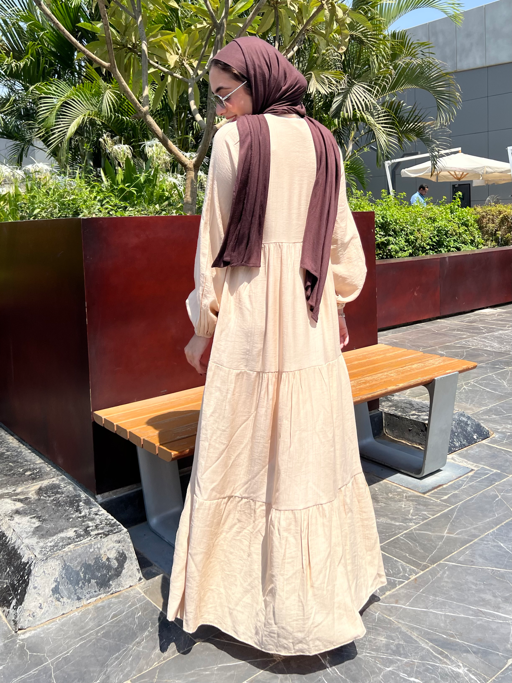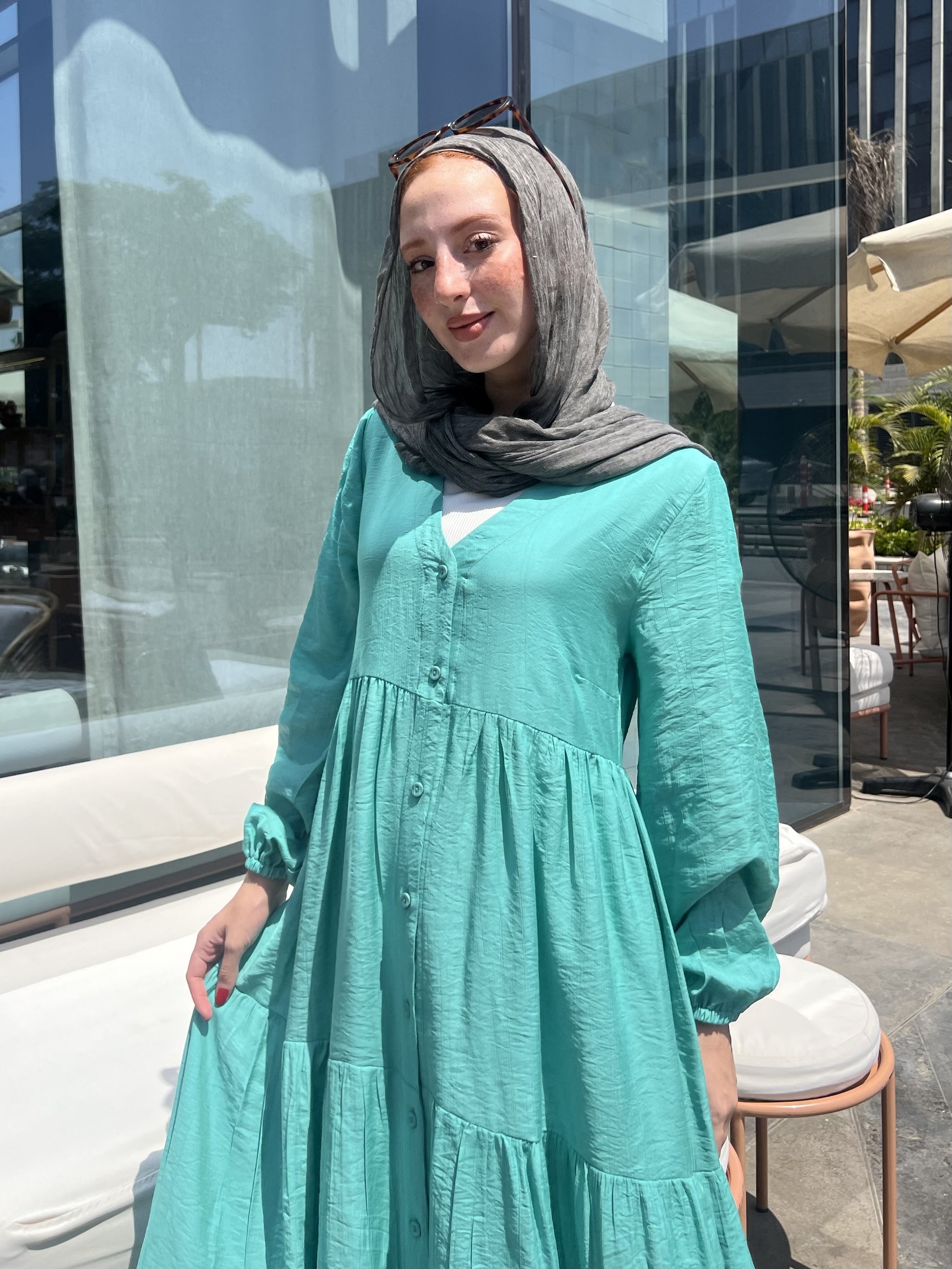 التصميم: فستان كتان ناعم سادة بأزرار أمامية – يتلبس مفتوح أو مقفول.